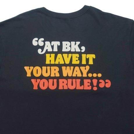 ・フロントと袖口にバーガーキングのロゴをプリント。バックにはロゴと一緒のカラーリングで文字がプリントされています。