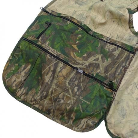 ・フロント、ライナーに沢山のジッパー付き収納を備えたハンティングベスト。バックにはハンターポケットを装備。バッグ不要のベストです。